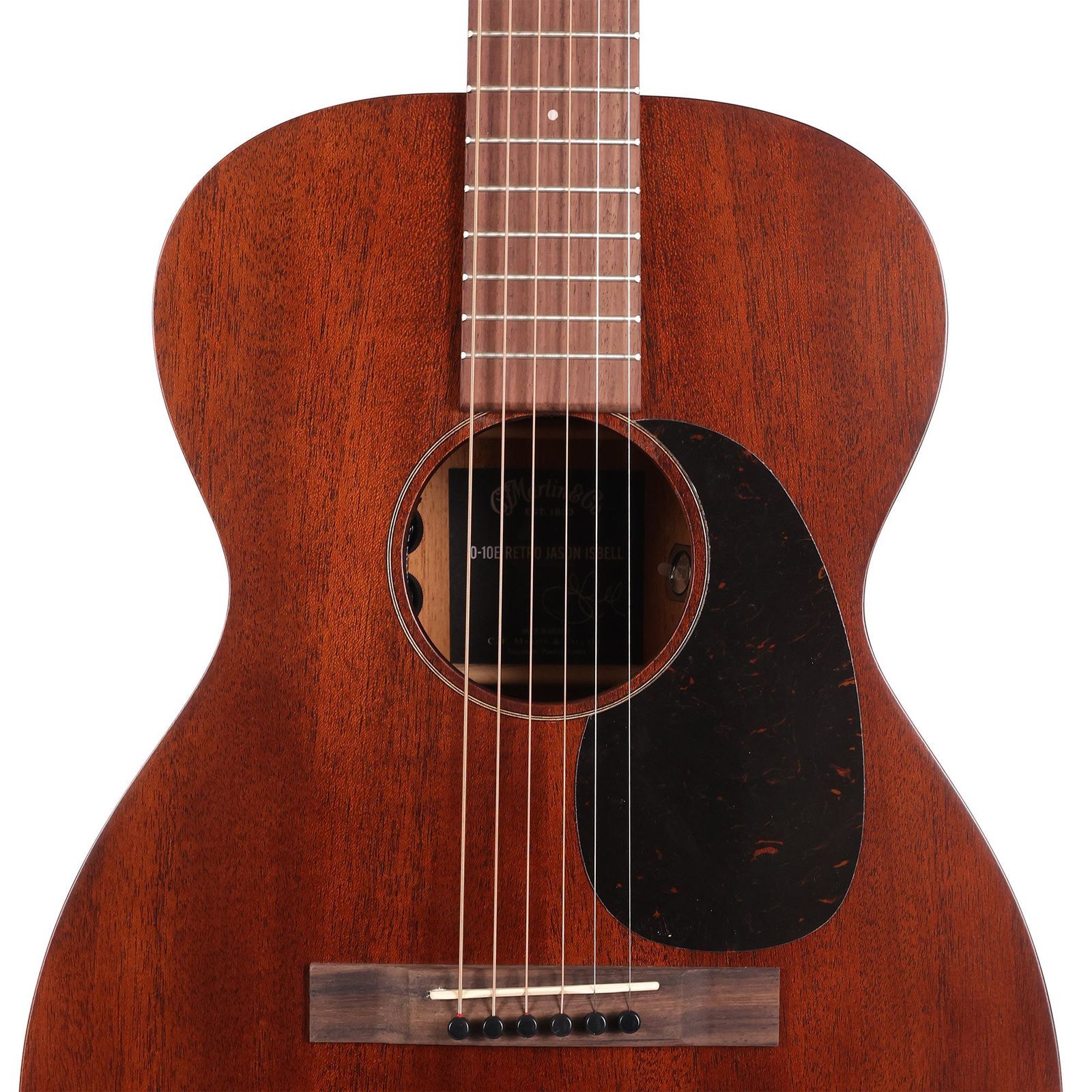 This is the Martin 0-10E Jason Isbell Signature guitar, a Road Series recreation of the vintage 1940 Martin 0-17 which Jason used to record his latest solo album, the excellent “Foxes in the Snow”. Built with a satin solid mahogany top, back, and sides and a 0 14-fret body, it delivers warm, focused tone with clear trebles and punchy mids. The Performing Artist neck and 24.9″ scale length provide a smooth, comfortable feel, while scalloped spruce X-bracing adds clarity and responsiveness. East Indian rosewood accents, 17-style inlays, and nickel open gear tuners complete the look. Equipped with Martin E1 electronics and strung with Martin strings designed in collaboration with Jason, it’s a soulful, accessible tool for honest, expressive songwriting.